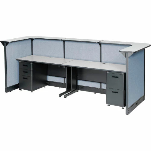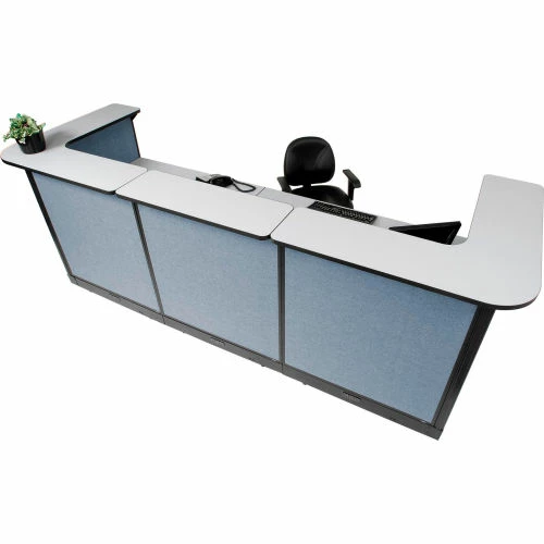 Interion By Global Industrial Interion® U-Shaped Electric Reception Station, 124"W x 44"D x 46"H, Gray Counter, Blue Panel
