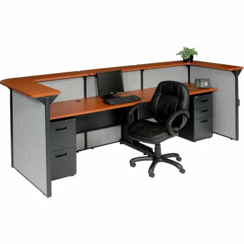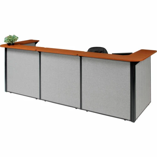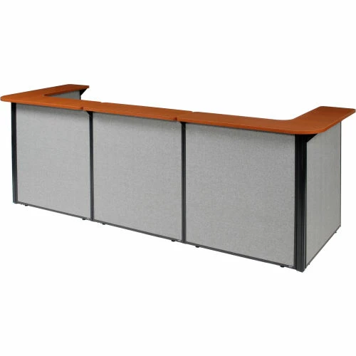 Interion By Global Industrial Interion® U-Shaped Reception Station, 124"W x 44"D x 44"H, Cherry Counter, Gray Panel