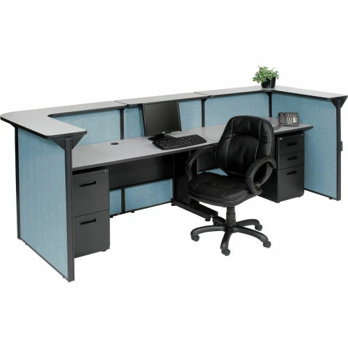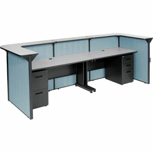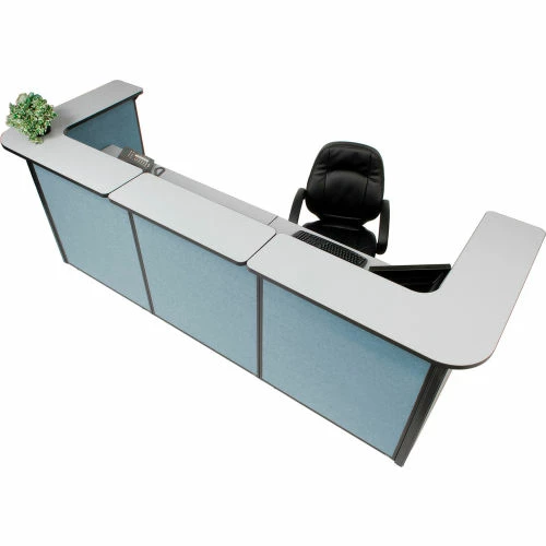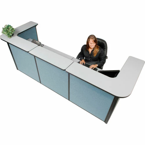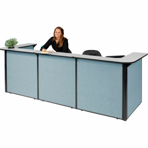 Interion By Global Industrial Interion® U-Shaped Reception Station, 124"W x 44"D x 44"H, Gray counter, Blue Panel