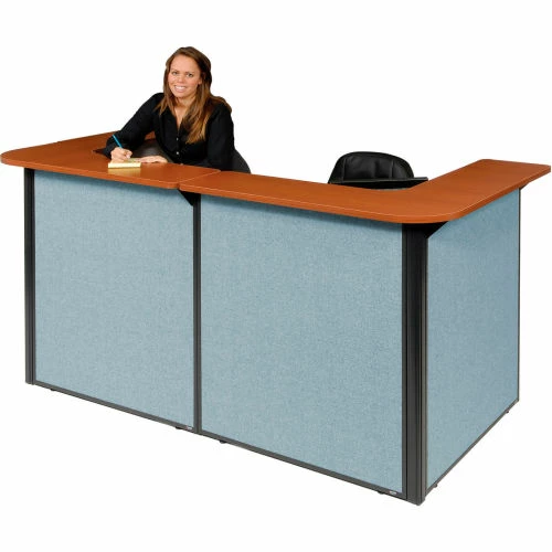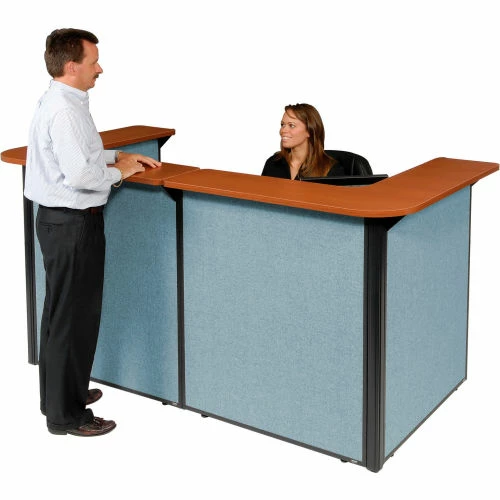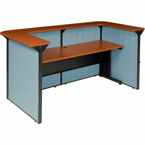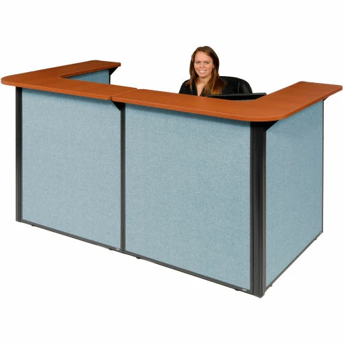 Interion By Global Industrial Interion® U-Shaped Reception Station, 88" W x 44"D x 44"H, Cherry Counter, Blue Panel