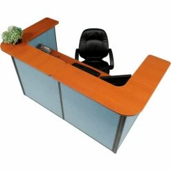 Be the first to review “Interion By Global Industrial Interion® U-Shaped Reception Station, 88" W x 44"D x 44"H, Cherry Counter, Blue Panel” Cancel reply