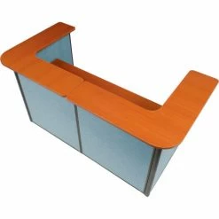 U-Shaped Reception Station, 88″ W x 44″D x 44″H, Cherry Counter, Blue Panel