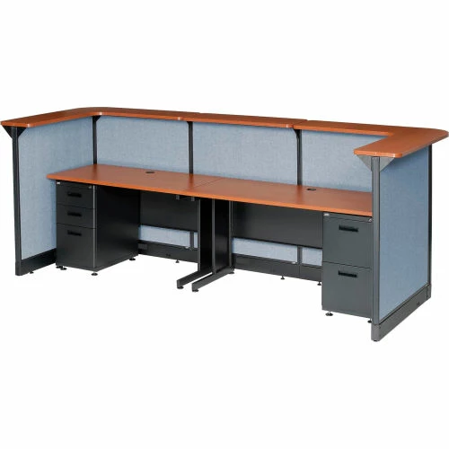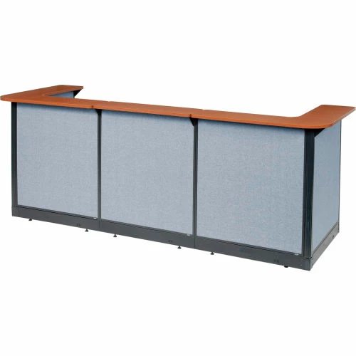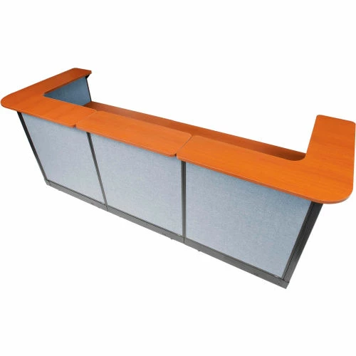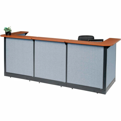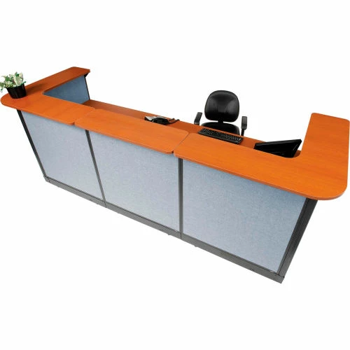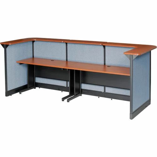 Interion By Global Industrial Interion® U-Shaped Reception Station w/Raceway 124"W x 44"D x 46"H Cherry Counter Blue Panel