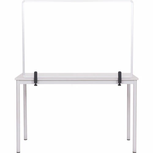 The Protector Frameless Glass Desktop is an important tool that helps users maintain contact while still being protected. This product is ideal for shared office spaces and other public settings. This desktop barrier is extremely easy to clean and sanitize. This product features a pair of robust clamps which attach to the tabletop or desktop.