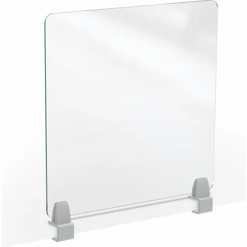 Keep your students, staff, and customers safer and more protected from the spread of germs with a Clarity Acrylic Desktop Divider. Available in three different configurations to suit your desktop needs: edge clamp for mounting on the edge of the desktop, center clamp to divide a desktop for more than one user, or freestanding to mount wherever needed on the desktop. Use more than one to protect on all sides. Ideal for use in classrooms, offices, or any customer-facing applications. Powder-coated aluminum mounts feature a rubber pad to protect surfaces. Freestanding models include double tape mounting option. Acrylic panels are 24″ high, and are available in multiple widths from 23″ to 72″ to fit virtually any desktop up to 1-3/5″ thick. Mix and match sizes to fit your desks and tables.