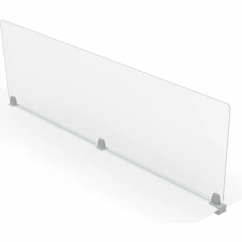 Keep your students, staff, and customers safer and more protected from the spread of germs with a Clarity Acrylic Desktop Divider. Available in three different configurations to suit your desktop needs: edge clamp for mounting on the edge of the desktop, center clamp to divide a desktop for more than one user, or freestanding to mount wherever needed on the desktop. Use more than one to protect on all sides. Ideal for use in classrooms, offices, or any customer-facing applications. Powder-coated aluminum mounts feature a rubber pad to protect surfaces. Freestanding models include double tape mounting option. Acrylic panels are 24″ high, and are available in multiple widths from 23″ to 72″ to fit virtually any desktop up to 1-3/5″ thick. Mix and match sizes to fit your desks and tables.