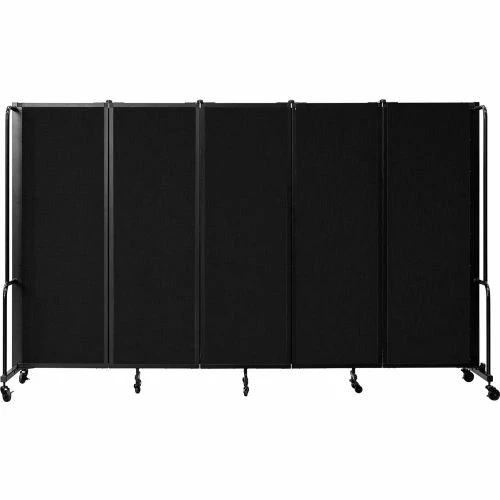 National Public Seating NPS® Mobile Room Divider, Fabric, 118"W x 6′ H, 5 Panels, Black