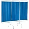 Provides a quick and easy way to divide space and create privacy for patients. Sturdy three panel hinged design for easy storage and quick deployment. White powder coated steel frame with wide stance legs for stability and 2″ twin wheel casters for easy maneuverability. Curtains are made from easy to clean, flame retardant vinyl material. When opened, entire unit measures 81″L x 69″H. This product is made in USA.