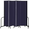 Screenflex Portable Room Dividers provide both a functional and visual appealing design element to any facility, office, school, hotel, medical center, hospitality establishment, or religious facility looking to use their space more efficiently. Each panel consists of an aluminum frame which surrounds a 1/2″ closed honeycomb core that is covered with two layers of fiberglass insulation for maximum sound absorption and tackability. Contrast that with other temporary walls that are rigid where sound bounces right off the partition. Additionally, Screenflex folding partition walls are designed with non-marking self-leveling caster wheels making them easy to arrange in any configuration desired to divide your space. Our wheels adapt to different levels of the floor, unlike other dividers that have hard plastic wheels that cause the divider to tilt during movement. Screenflex portable walls are made in the USA from 75% of the highest-quality recycled materials available to offer you years of dependable use. Scotchgardâ„¢ fabric protection included. No assembly required. Limited Lifetime Warranty.