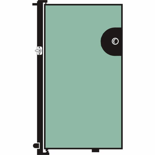 Partition door is made using vinyl upholstery. Convenient 2’W self closing door swing both in and out for ease of access. Easily connects to end of Portable Room Dividers (sold separately) using the connector latches at the end of the unit. Panels are finished with 20 gauge powder coated steel trim covering 26 gauge galvanized steel framing. Panels are constructed of 1/2″ closed cell honeycomb core with non-woven fiberglass facing and matte. Panels are joined with full length piano hinges and position control pivot-point hinges that allow panels to be placed up to 180 degrees for various configurations. 22″W x 60″H Overall. Mint Finish.