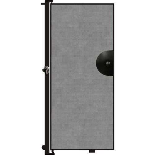 Partition door is made using sound absorbing fabric upholstery that provides a tackable surface. Convenient 2’W self closing door swing both in and out for ease of access. Easily connects to end of Portable Room Dividers (sold separately) using the connector latches at the end of the unit. Panels are finished with 20 gauge powder coated steel trim covering 26 gauge galvanized steel framing. Panels are constructed of 1/2″ closed cell honeycomb core with non-woven fiberglass facing and matte. Panels are joined with full length piano hinges and position control pivot-point hinges that allow panels to be placed up to 180 degrees for various configurations. 22″W x 72″H Overall. Stone Finish.