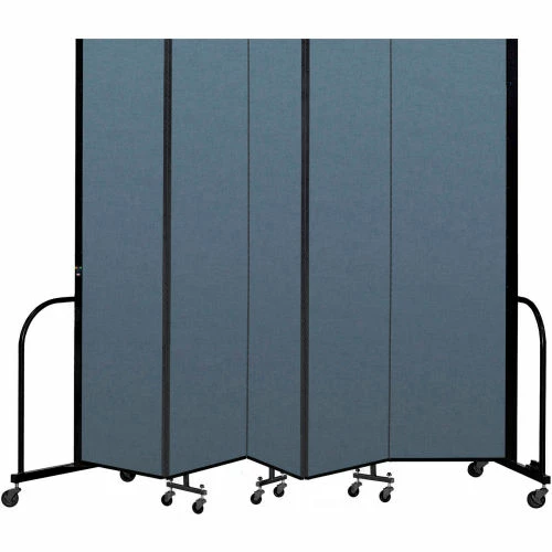 Screenflex Portable Room Divider 5 Panel, 8’H x 9’5"W, Fabric Color: Blue
