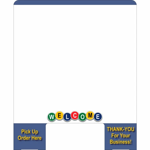Our Cashier Guard is the perfect personnel protection barrier for any counter or desktop installation. Made of polycarbonate, these barriers promote social distancing and a safe work area. Each guard kit includes a face panel, two side support uprights and twelve panel assembly clips. The face panel includes a convenient pass thru opening for transactions. Once assembled, the unit is strong and sturdy while also being lightweight for simple movement from one positon to another. Minimal maintenance required, as the surface may be cleaned by an array of window or disinfecting products to keep your guard clear and free of bacteria. Pass-through Size: 11″ x 5″. Message on Cashier Guard: (Above Slot) WELCOME Pick Up Order Here THANK-YOU For Your Business