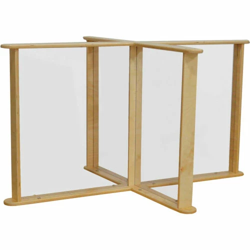 GREENGUARD Gold certified. This see-thru table top partition with scratch and shatter resistant acrylic can be fastened onto any table to create (4) individual work spaces. This partition is designed to fit Wood Design’s HPL3648DSK series of tables, but can be added to any table that is 48″ x 36″ or larger. The partition ships ready to assemble with step by step instructions.