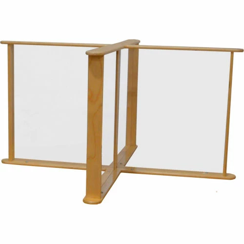 GREENGUARD Gold certified. This see-thru table top partition with scratch and shatter resistant acrylic can be fastened onto any table to create (4) individual work spaces. This partition is designed to fit Wood Design’s HPL48RND series of tables, but can be added to any table that is 48″ x 48″ or larger. The partition ships ready to assemble with step by step instructions.